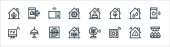 ikony linii ubezpieczeniowej. zestaw liniowy. zestaw linii wektorowych jakości, takich jak pracownik, pożar, trumna, szpital, telefon, ubezpieczenie stomatologiczne, tarcza, hotel