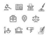 ikony linii ubezpieczeniowej. zestaw liniowy. zestaw linii wektorowych jakości, takich jak portmonetka, saldo, pożar, pomoc, ubezpieczenie, mobile, wózek dziecięcy, sprawiedliwość
