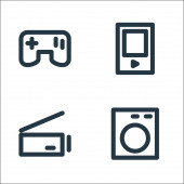 Zdjęcie "ikony linii elektroniki. zestaw liniowy. wysokiej jakości zestaw linii wektorowych, takich jak suszarka do włosów, smartfon, odtwarzacz muzyczny, klimatyzator, telewizor, pulpit, klawiatura fortepianu, pilot zdalnego sterowania" może być wykorzystywane do celów osobistych i komercyjnych zgodnie z warunkami zakupionej licencji Royalty-free. Obraz jest dostępny do pobrania w jakości wysokiej rozdzielczości do 5760x3840.