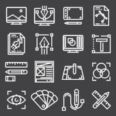 Zdjęcie "ikony projektów graficznych. zestaw liniowy. wysokiej jakości zestaw linii wektorowych, takich jak szczotka, laptop, lampa biurkowa, komputer, wałek lakierniczy, notatnik, transformator, widoczne" może być wykorzystywane do celów osobistych i komercyjnych zgodnie z warunkami zakupionej licencji Royalty-free. Obraz jest dostępny do pobrania w jakości wysokiej rozdzielczości do 5760x3840.