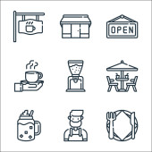 ikony linii kawiarni. zestaw liniowy. wysokiej jakości zestaw linii wektorowych, takich jak stół, menu, kawiarnia