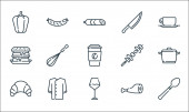 ikony linii gastronomicznej. zestaw liniowy. wysokiej jakości zestaw linii wektorowych, takich jak chleb, kapelusz szefa kuchni, smażone jajko, patelnia, soda, filiżanka, filiżanka kawy