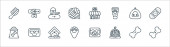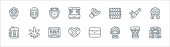 ikony linii reggae. zestaw liniowy. wysokiej jakości zestaw linii wektorowych, takich jak domek na plaży, gitara akustyczna, scena, zioło, saszetka, van, jamajski, dzwonek