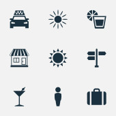 ikony wakacyjnej linii. zestaw liniowy. wysokiej jakości zestaw linii wektorowych, takich jak samochód, drink, okulary