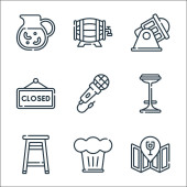 ikony wakacyjnej linii. zestaw liniowy. zestaw linii wektorowych jakości, takich jak wskazówki, filiżanka kawy, plecak, flaga, deszczowy, lato, stół jadalny, dźwięk