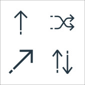 Ikony linii ui. zestaw liniowy. wysokiej jakości wektor linii zestaw, takich jak krzyż, strzałka w górę, strzałka w dół, krzyż, przeciwstawne strzałki, zminimalizować, rozszerzyć, strzałka w prawo