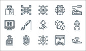 Ikony linii dostawy. zestaw liniowy. zestaw linii wektorowych jakości, takich jak pakiet, otwarty, chmura obliczeniowa, dostawa ciężarówka, dostawa, pakiet, komputer, pakiet, smartfon