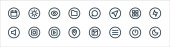 podstawowe ikony linii ui. zestaw liniowy. zestaw linii wektora jakości, takich jak kursor, plik, kalendarz, jasność, powiadomienie, odtwarzanie, krzyż, blokada