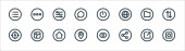 podstawowe ikony linii ui. zestaw liniowy. zestaw linii wektorowych jakości, takich jak dane mobilne, czas, powiadomienie, siatka, udostępnianie, ekran, folder, menu