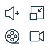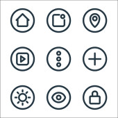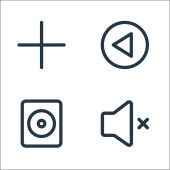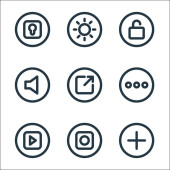 podstawowe ikony linii ui. zestaw liniowy. zestaw linii wektorowych jakości, takich jak głośność, ustawienie, wyszukiwanie, siatka, galeria, udostępnianie, flash, więcej