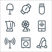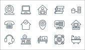 ikony linii biura domowego. zestaw liniowy. wysokiej jakości zestaw linii wektorowych, takich jak laptop, biurko, router, garaż, śniadanie, wskaźnik, telefon