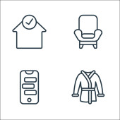 ikony linii biura domowego. zestaw liniowy. wysokiej jakości zestaw linii wektorowych, takich jak laptop, krzesło, kawa, wanna, dom, biurko, szlafrok, dom