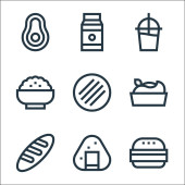 ikony linii gastronomicznej. zestaw liniowy. wysokiej jakości zestaw linii wektorowych, takich jak masło orzechowe, kawałek ciasta, ser