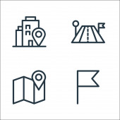 ikony miejskiej linii życia. zestaw liniowy. zestaw linii wektorowych jakości, takich jak flaga, taksówka, mapa