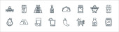 ikony włoskiej linii. zestaw liniowy. wysokiej jakości zestaw linii wektorowych, takich jak szkło, gondola, karnawał, ekspres do kawy, posąg, samochód sportowy, gondolier