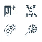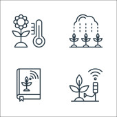 ikony inteligentnych linii rolnych. zestaw liniowy. wysokiej jakości zestaw linii wektorowych, takich jak książka, roślina, rolnik, światło słoneczne, cykl, ziemia, miejsce, rośliny nawadniające