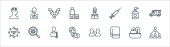 ikony linii łazienki. zestaw liniowy. wysokiej jakości zestaw linii wektorowych, takich jak płyn do płukania ust, mydło w płynie, śmietana, wiadro, umywalka, woda, umywalka, gąbka