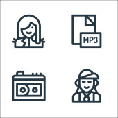 ikony linii muzycznej. zestaw liniowy. wysokiej jakości zestaw linii wektorowych, takich jak mpa plik muzyczny, harfa, nuta muzyczna
