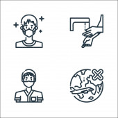 ikony linii pandemii płaskiego wirusa covid. zestaw liniowy. wysokiej jakości zestaw linii wektorowych, takich jak pandemia, lot, podróże, przewoźnik, respirator, osoby starsze, termometr, grupa