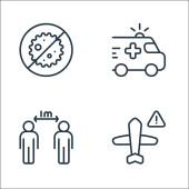 Zdjęcie "ikony linii pandemii płaskiego wirusa covid. zestaw liniowy. wysokiej jakości zestaw linii wektorowych, takich jak pandemia, lot, podróże, przewoźnik, respirator, osoby starsze, termometr, grupa" może być wykorzystywane do celów osobistych i komercyjnych zgodnie z warunkami zakupionej licencji Royalty-free. Obraz jest dostępny do pobrania w jakości wysokiej rozdzielczości do 5760x3840.