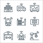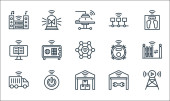 Internet rzeczy ikony linii. zestaw liniowy. wysokiej jakości zestaw linii wektorowych, takich jak robot, folder, chirurg, garaż, ebook, stereo, rezonans magnetyczny, przycisk, sygnalizacja świetlna