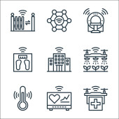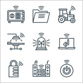 Zdjęcie "Internet rzeczy ikony linii. zestaw liniowy. wysokiej jakości zestaw linii wektorowych, takich jak robot, folder, chirurg, garaż, ebook, stereo, rezonans magnetyczny, przycisk, sygnalizacja świetlna" może być wykorzystywane do celów osobistych i komercyjnych zgodnie z warunkami zakupionej licencji Royalty-free. Obraz jest dostępny do pobrania w jakości wysokiej rozdzielczości do 5760x3840.