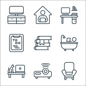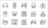Zdjęcie "Zostań w ikonach domowej linii. zestaw liniowy. wysokiej jakości zestaw linii wektorowych, takich jak relaks, ebook, powołanie, gotowanie, spanie, kąpiel, domino, kino domowe, wideo" może być wykorzystywane do celów osobistych i komercyjnych zgodnie z warunkami zakupionej licencji Royalty-free. Obraz jest dostępny do pobrania w jakości wysokiej rozdzielczości do 5760x3840.