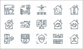 Zostań w ikonach domowej linii. zestaw liniowy. wysokiej jakości zestaw linii wektorowych, takich jak zakupy online, kino domowe, relaks, kąpiel, spanie, muzyka, puzzle, dumbell, poduszka