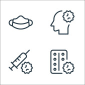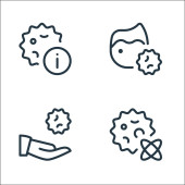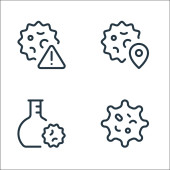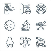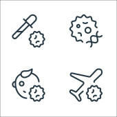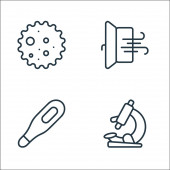 ikony linii przesyłu wirusa. zestaw liniowy. zestaw linii wektorowych jakości, takich jak rozmowy, wyszukiwanie wirusów, termometr