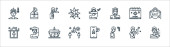 ikony linii przesyłu wirusa. zestaw liniowy. wysokiej jakości zestaw linii wektorowych, takich jak lekarz, pobyt w domu, maska medyczna, mycie rąk, podróże, termometr, kaszel, dezynfektor rąk