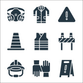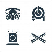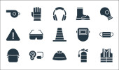 płaskie ikony ratownicze i ochronne. zestaw liniowy. wysokiej jakości zestaw linii wektorowych, takich jak kask, kamizelka ratunkowa, zatyczka do uszu, ostrzeżenie, syrena, boi ratunkowej, gogle bezpieczeństwa