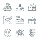 ikony linii spa. zestaw liniowy. wysokiej jakości zestaw linii wektorowych, takich jak akupunktura, kamień, masaż