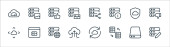 ikony linii baz danych i serwerów. zestaw liniowy. zestaw linii wektorowych jakości, takich jak dysk ssd, serwer, firewall, filtr, sieć, chmura, publiczny, ostrzeżenie