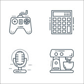 ikony linii urządzeń technologicznych. zestaw liniowy. wysokiej jakości zestaw linii wektorowych, takich jak rejestrator głosu, ekspres do kawy, klimatyzator, simcard, mikrofon, mikrofon, karta SIM, kamera cctv