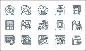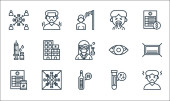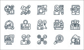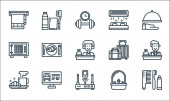ikony linii kina. zestaw liniowy. wysokiej jakości zestaw linii wektorowych, takich jak operator kamery, kino, trailler, reżyser, kołowrotek filmowy, bilety do kina, aktorzy, monitor, popcorn