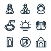 ikony linii Ramadhan. zestaw liniowy. zestaw linii wektorowych jakości, takich jak wudhu, sajadah, czytanie