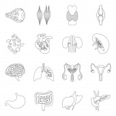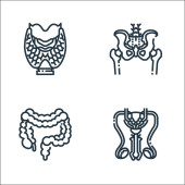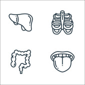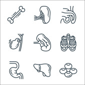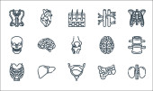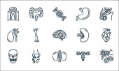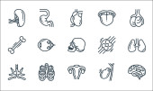 ikony linii narządów ludzkich. zestaw liniowy. wysokiej jakości zestaw linii wektorowych, takich jak wątroba, pęcherzyk żółciowy, mocz, krwinki, serce, ząb, macica, kości, żołądek
