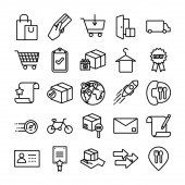 zakupy ikony linii e-commerce. zestaw liniowy. zestaw linii wektorowych jakości, takich jak e-commerce, koszyk zakupów, sklep, cena tagu, płatności online, rabat, koperta, voucher, rating