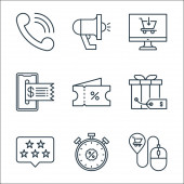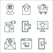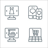 zakupy ikony linii e-commerce. zestaw liniowy. wysokiej jakości zestaw linii wektorowych, takich jak e-commerce, web, megafon, koperta, monitor, zakupy online, torba na zakupy, e-commerce