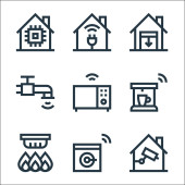 płaskie ikony linii smarthome. zestaw liniowy. zestaw linii wektorowych jakości, takich jak alarm, ustawienia, wifi