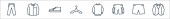 ikony linii szycia. zestaw liniowy. wysokiej jakości zestaw linii wektorowych, takich jak nici, rolki, skóra, sukienka, szorty, spodnie, poduszka na szpilki