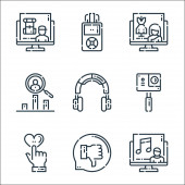 ikony linii muzycznej. zestaw liniowy. wysokiej jakości wektor linii zestaw, takich jak mp player, gitara pick, mikrofon, muzyka, folder muzyczny, pobierz, pedał, pobierz