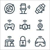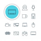 ikony linii elektroniki. zestaw liniowy. wysokiej jakości zestaw linii wektorowych, takich jak pralka, skaner, mp player