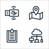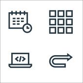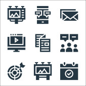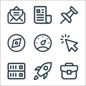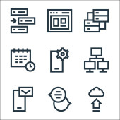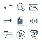 ikony linii zarządzania. zestaw liniowy. zestaw linii wektorowych jakości, takich jak karta identyfikacyjna, umowa, wykres przepływu