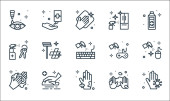 ikony higieniczne rutynowych linii. zestaw liniowy. wysokiej jakości zestaw linii wektorowych, takich jak wc, świece, papier toaletowy, ręcznik, skarpetki, manicure, płyta myjąca, wyrzucanie śmieci, wacik