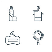 ikony higieniczne rutynowych linii. zestaw liniowy. wysokiej jakości zestaw linii wektorowych, takich jak ząb, spray, mydło w płynie