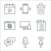 ikony linii interfejsu użytkownika. zestaw liniowy. zestaw linii wektorowych jakości, takich jak usuwanie, przypominanie, komputer