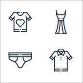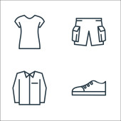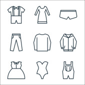 ikony ubrań i linii ubrań. zestaw liniowy. wysokiej jakości zestaw linii wektorowych, takich jak t koszula, bielizna, płaszcz, sukienka, ubrania sportowe, t koszula, t koszula, but