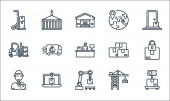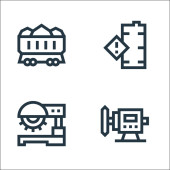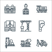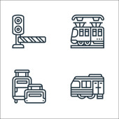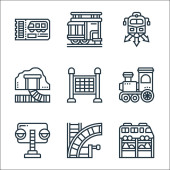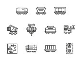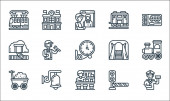 ikony linii kolejowych. zestaw liniowy. zestaw linii wektorowych jakości, takich jak ładunek kolejowy, tunel, koleje, operator pociągu, ruch, dworzec kolejowy, technik, lokomotywa parowa