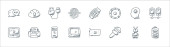ikony linii technologicznych. zestaw liniowy. wysokiej jakości zestaw linii wektorowych, takich jak zacisk, dysk twardy, rozmowa, pytanie, bateria, głośnik, cloud computing, mysz